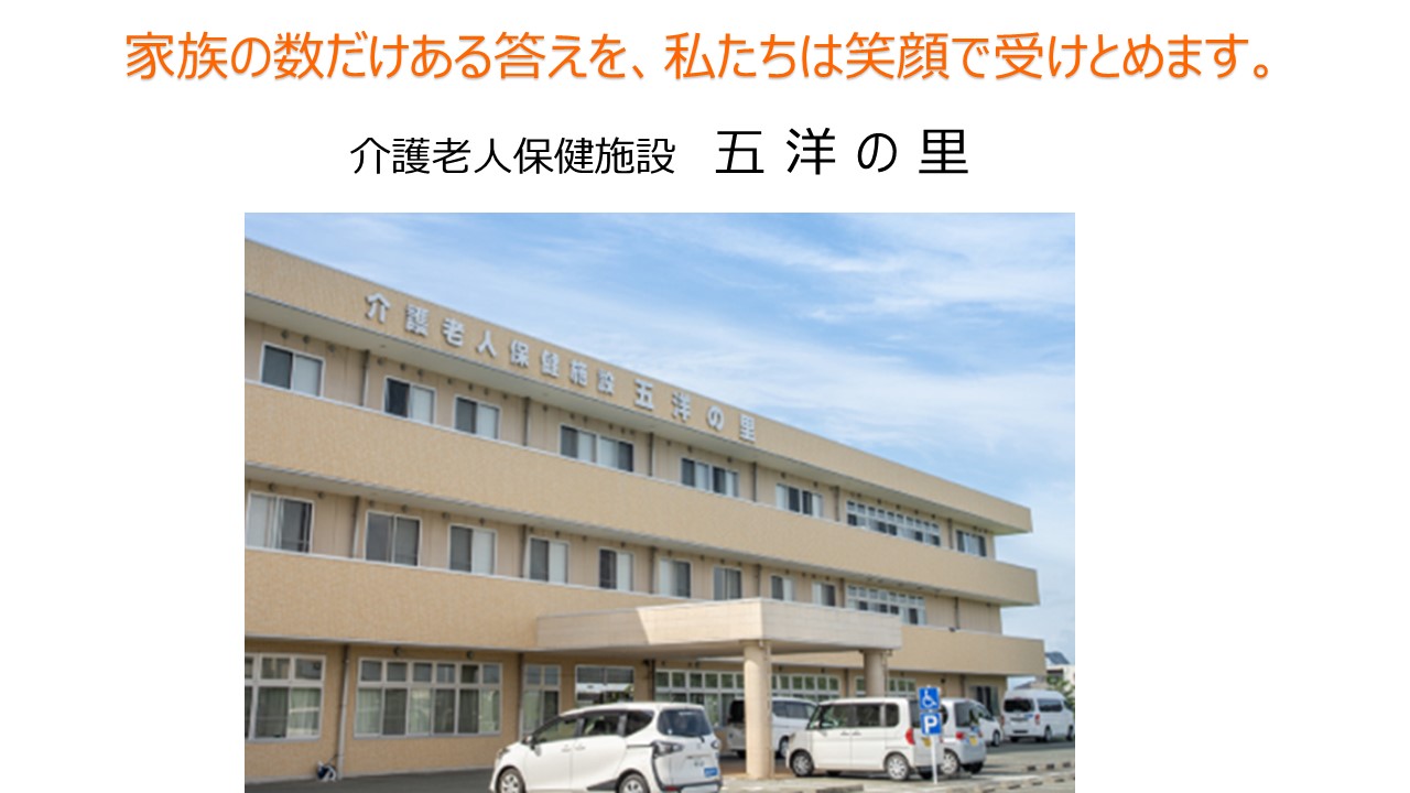 介護のかたち、家族のかたち、くらしのかたち、 地域のかたち、環境のかたち。 それぞれのかたちに込められた想いを大切に抱き、 支えていくことが、わたしたち、「五洋の里」の誇りです...